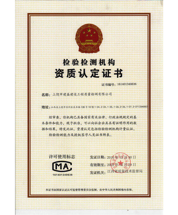 上饒市建盛建設(shè)工程質(zhì)量檢測(cè)有限公司